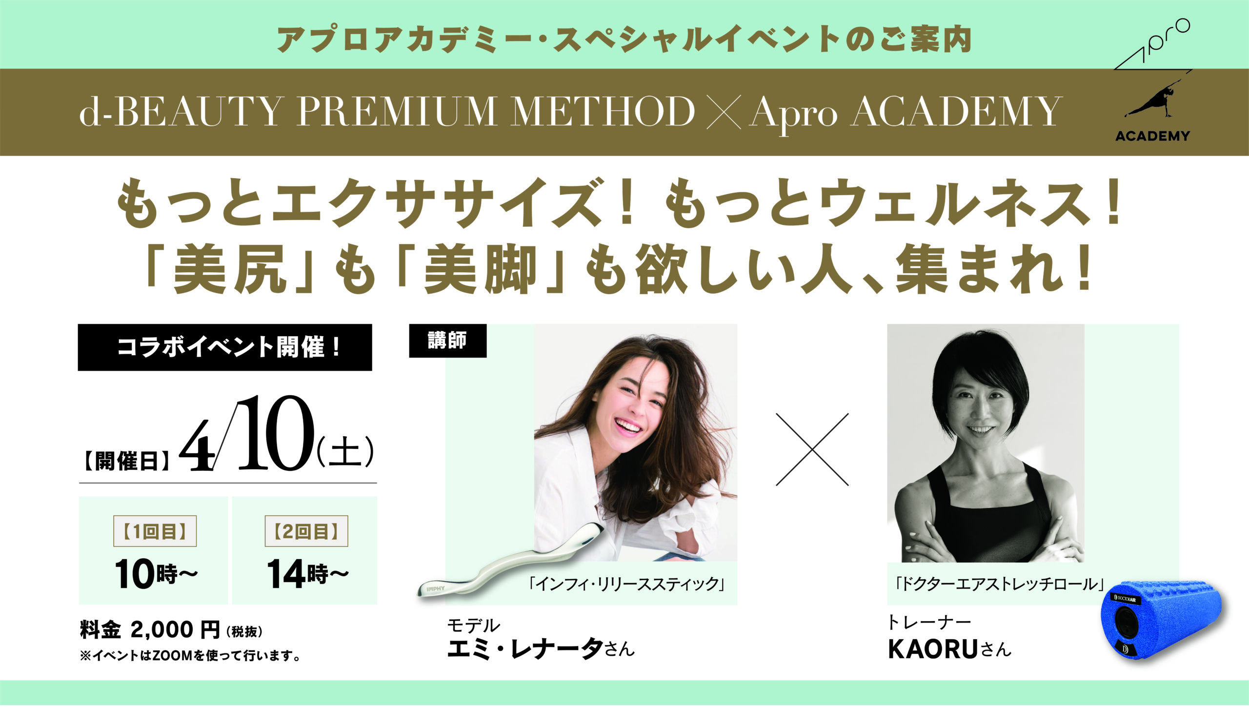 講師に、d-BEAUTY PREMIUM METHODカバーガールのエミ・レナータさんと、Apro ACADEMY主宰のKAORUをお招きした豪華イベント!